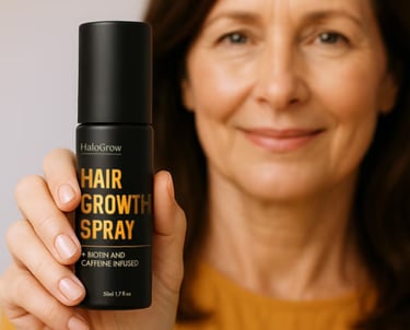 HaloGrow Hair Spray is a topical hair growth formula designed to help men and women experiencing thinning or hair loss. Unlike oral supplements, HaloGrow is applied directly to the scalp, delivering active ingredients straight to the hair follicles.